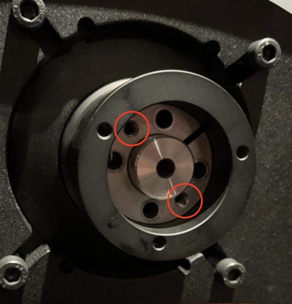 If you are having problems unlocking the drive lock that holds the shaft use one of the 4 M6 bolts in one of the 2 threaded holes circled in red in the picture below, once it bottoms out half an extra turn clockwise will unlock it.